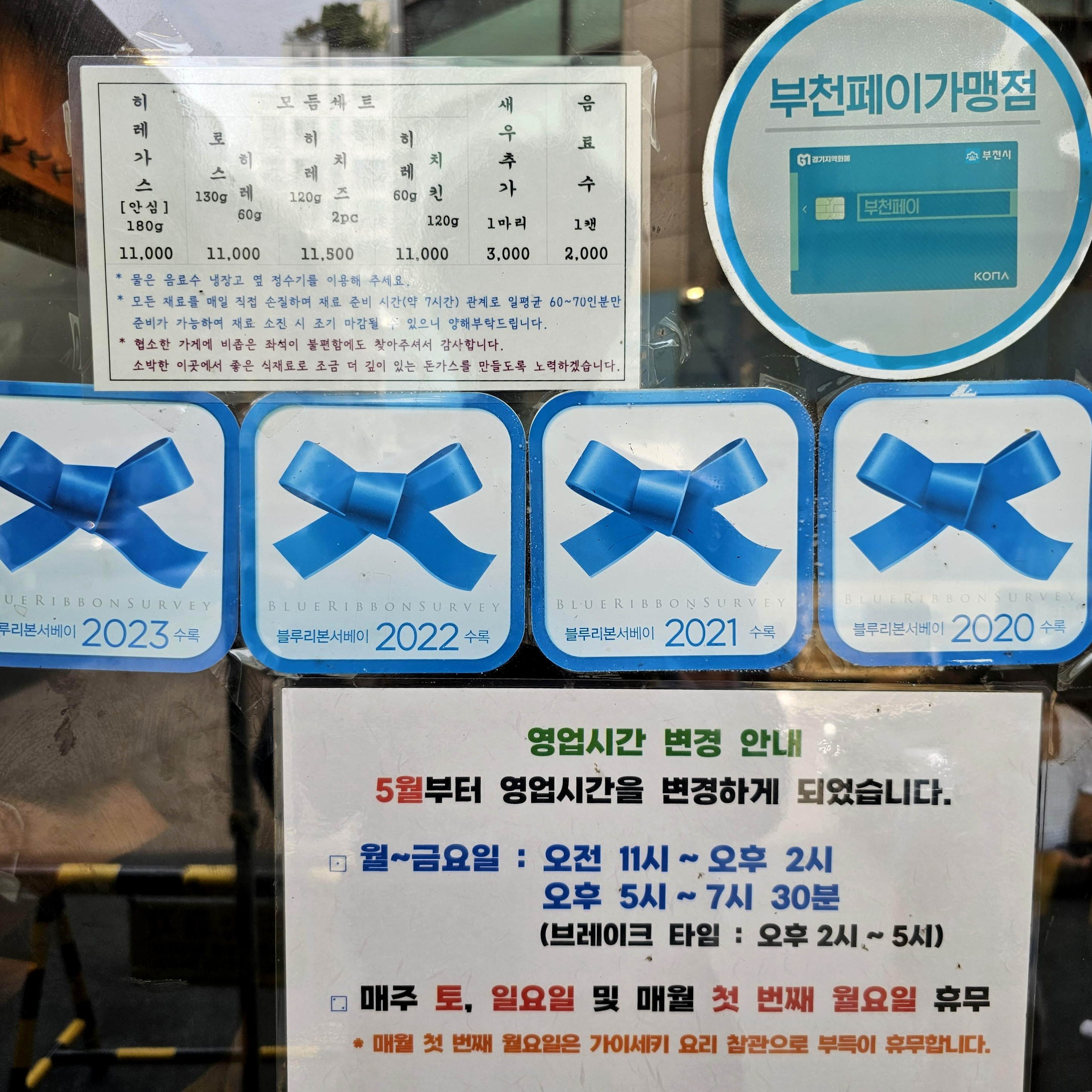블루리본 서베이 달린 음식점을 개인적으로 믿지는 않지만, 어느 정도 동네에서 먹어주는 정도로 인식하고 있습니다. 절대적인 척도는 아니지만 없는 것보다는 있는 게 분명 나으니까요.. 문 앞에 적힌 메뉴판을 보고 대충 음식을 고르고 있으면 다음 순번 손님에게 미리 음식 주문을 받으십니다.