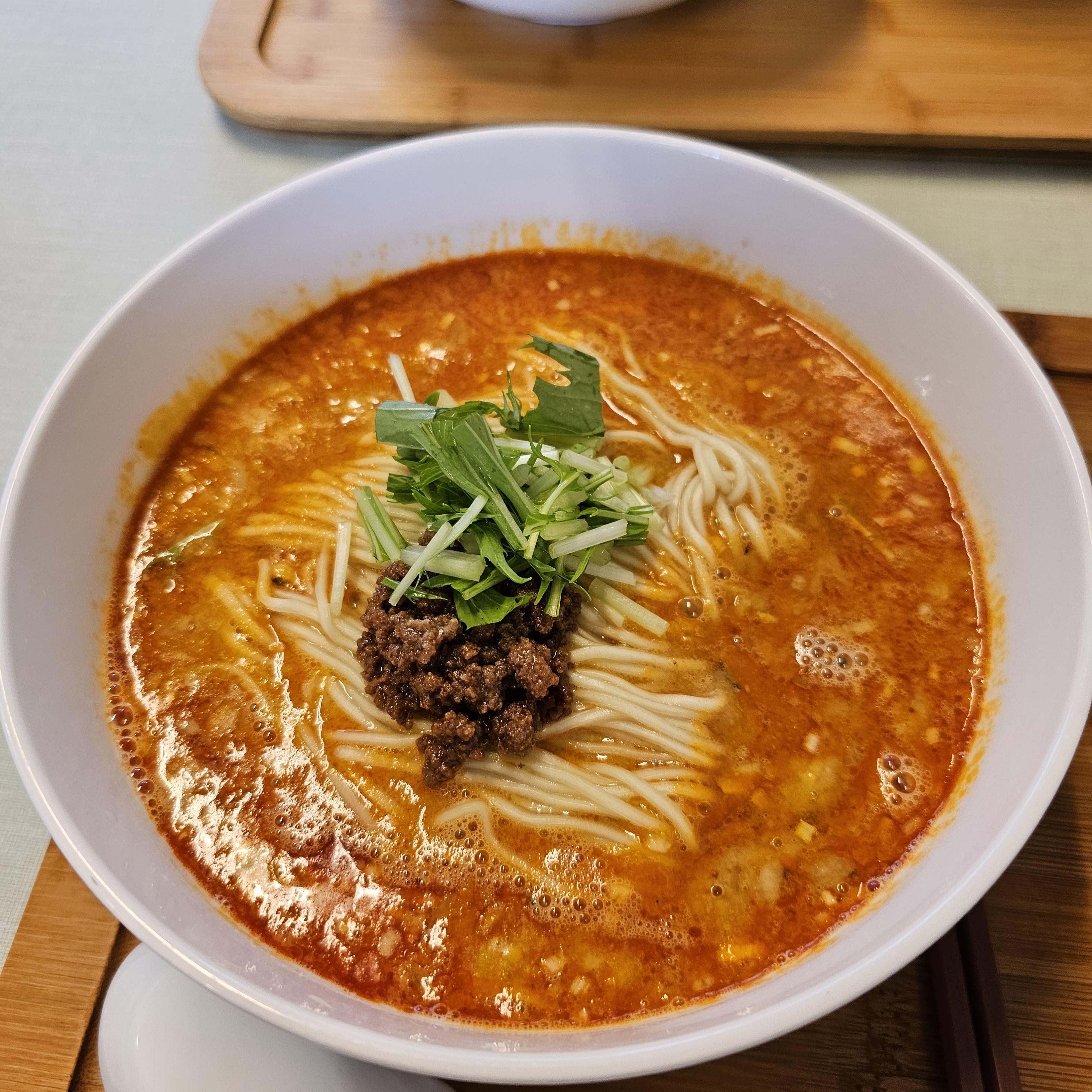 우리나라에 있는 탄탄면공방 같은 맛은 아닙니다. 물론 땅콩버터 같은 고소한 맛이 난다는 점에서 같은 음식인 건 맞습니다만.. 국물이 더 깊고 깔끔합니다. 면의 질감도 이쪽이 훨씬 좋네요. 느끼하지 않게 깔끔하면서 간이 아주 적절합니다.